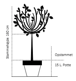 Løvfældende stor busk / lille træ med mørkerøde blade. Er kraftigt voksende med bredkrone. Bliver 4 – 7 m høj og 2 – 4 m bred.