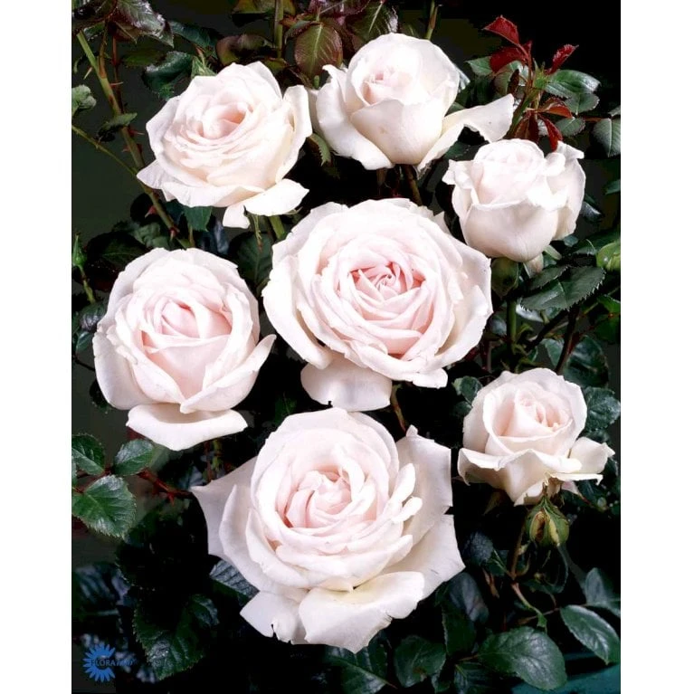 Velforgrenet med busket vækstform. Roserne sidder samlet 3-5 stk, dog undertiden enkeltvis.