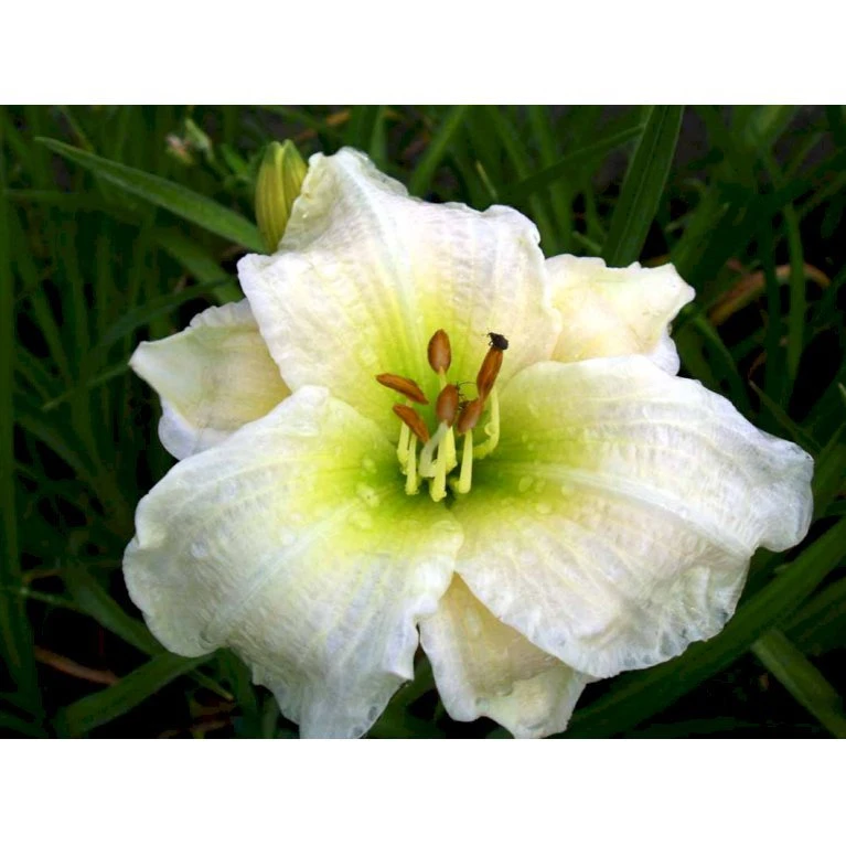 Trives bedst i et lys til halvskygget område. Smukke, cremehvide dagliljer med grøngul midte.