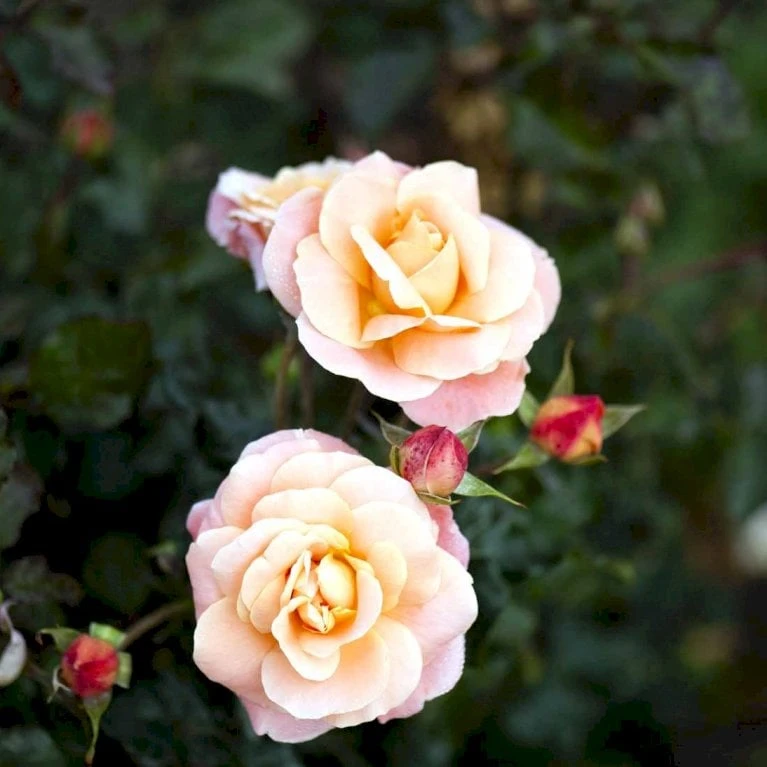 Flere nuancer af sart abrikos. Middelstor til stor halvfyldt blomst med let eller ingen duft.