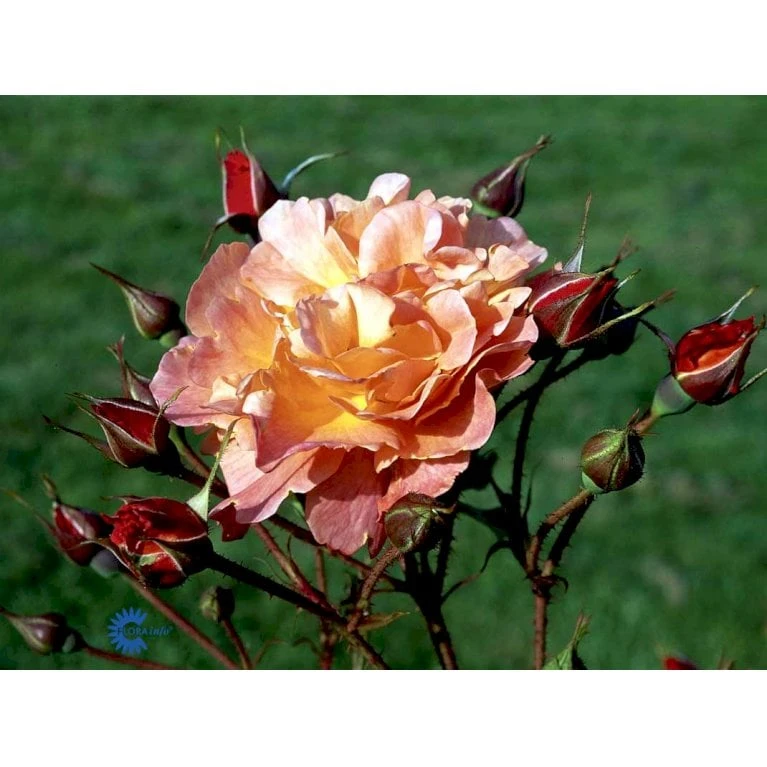 Orange til kobberrosa. Halvfyldte blomster med stærk og dejlig duft. 15-20 kronblade. 10-15 cm i diameter.